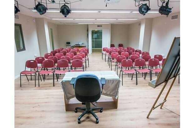 מערכת הגברה ותאורה מקצועית, מסך מתכוונן, שולחנות אירוח ומקרן. כמו כן, המתחם