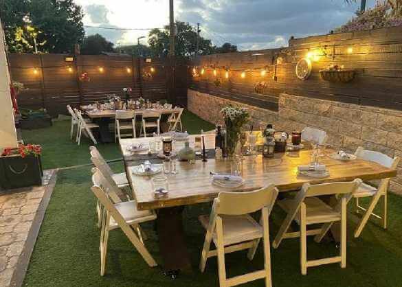 שף מפנקים, חצר פסטורלית עם פינות ישיבה ושולחנות משחק ומגוון רחב של חבילות אירוח
