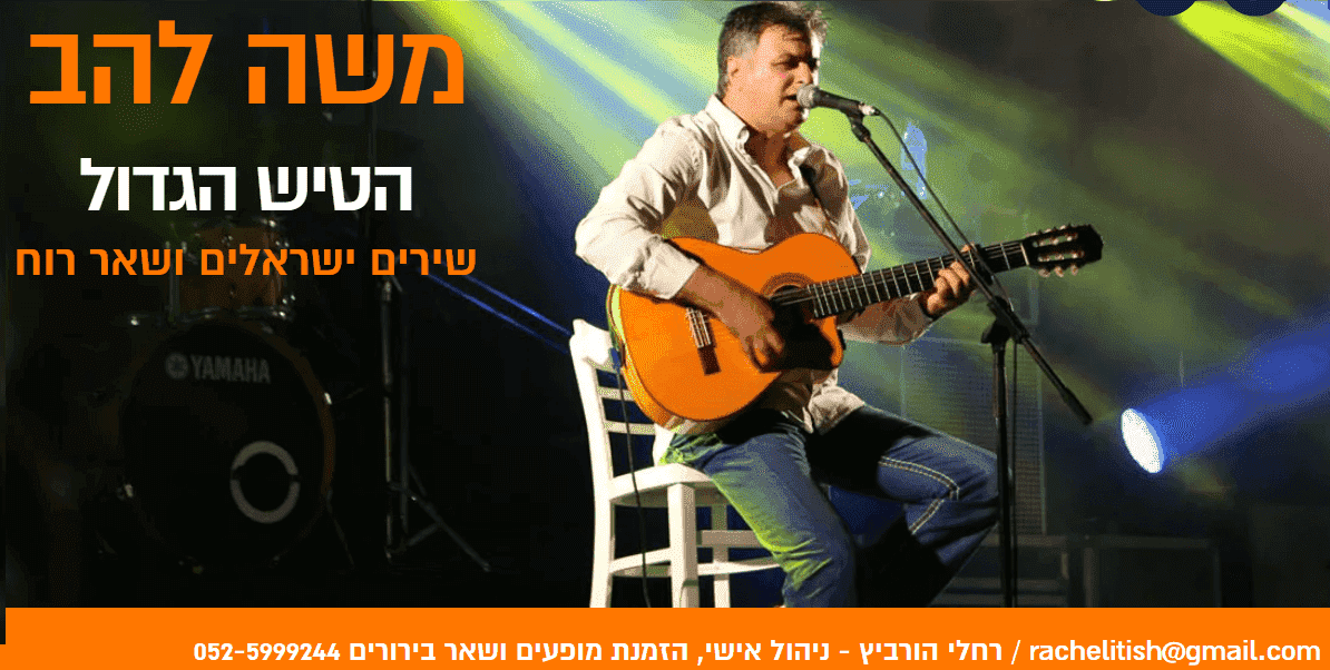 משה להב "הטיש הגדול" מזמין אתכם ליהנות ממופע מעניין ומרענן של שירים ישראליים ושאר רוח, היוצר דינמיקה חברתית בהופעה שהפכה לתופעה של ממש.