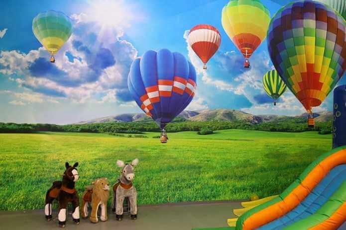 מ"ר של אטרקציה לפעוטות וילדים, מתקנים מתנפחים בכל מיני גדלים, מתחם גיימינג