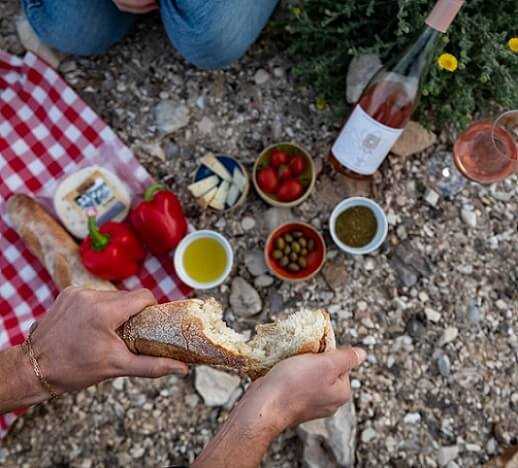 לחמים פריכים, שמן זית אורגני, זיתים, זעתר וירקות טריים היישר מהשדה.