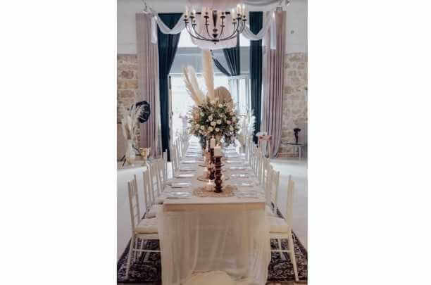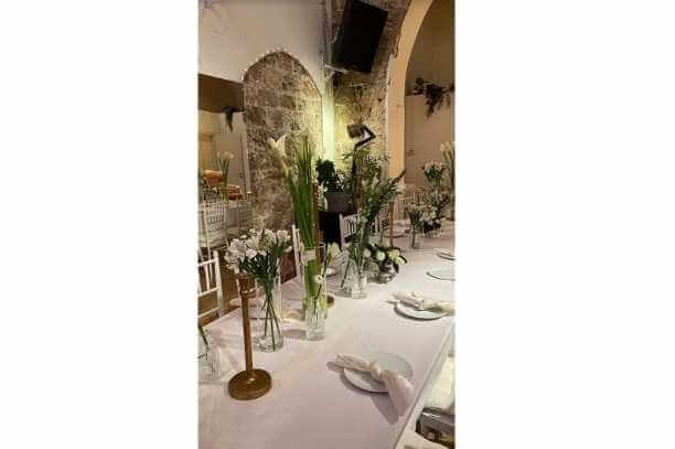 החלל עצמו כולל תקרות גבוהות, מראה אבן מחוספס וקשתות. לרשותכם, חברת הפקות פרטית