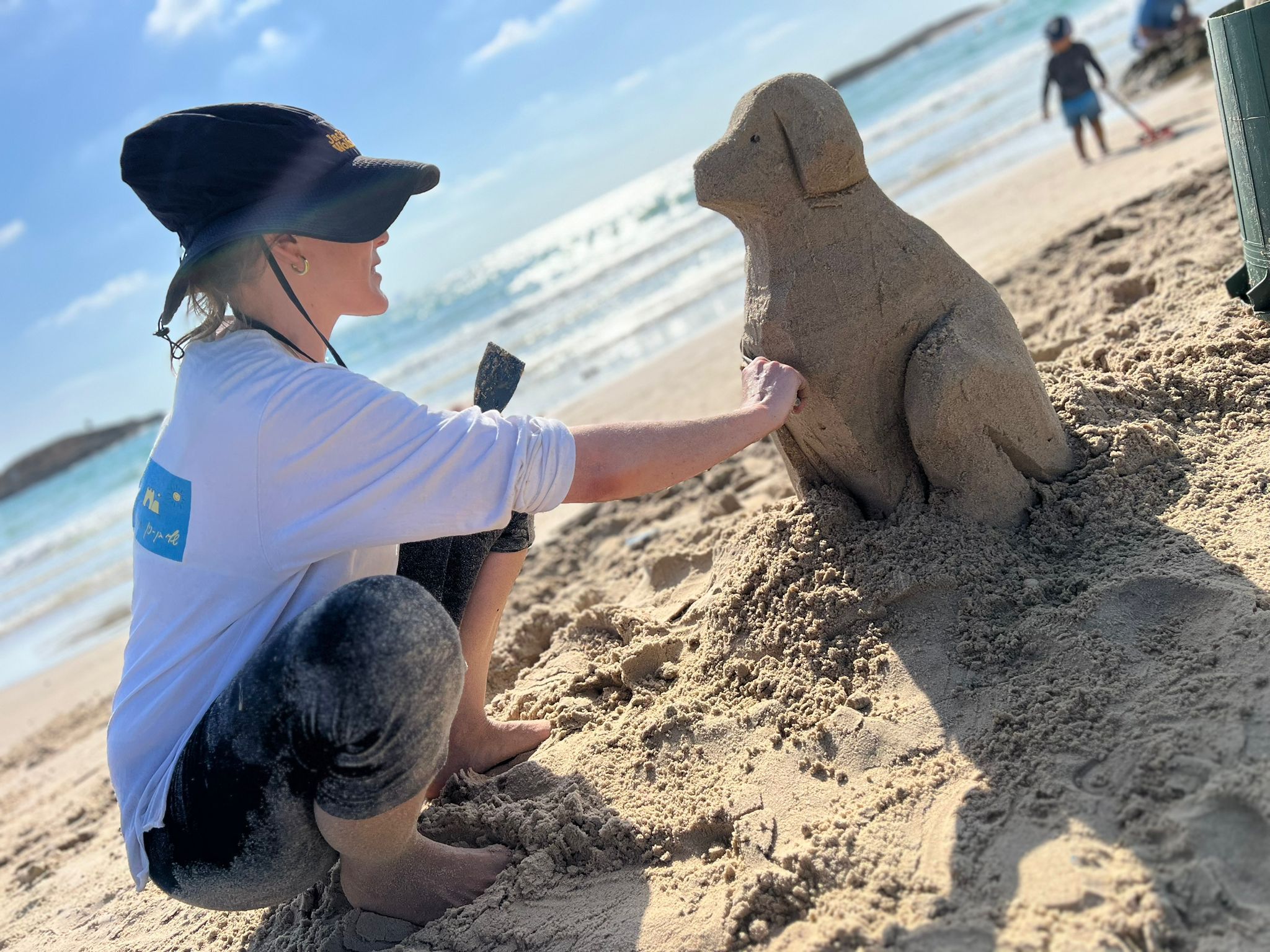 "אני מזמינה גם אתכם.ן לגלות איך עם כמה כלים, טכניקות פשוטות ומעט דמיון ניתן לפסל בכוחות עצמכם עולמות שלמים ומשמחים בחול ים". שלכם, שלי בן נון.