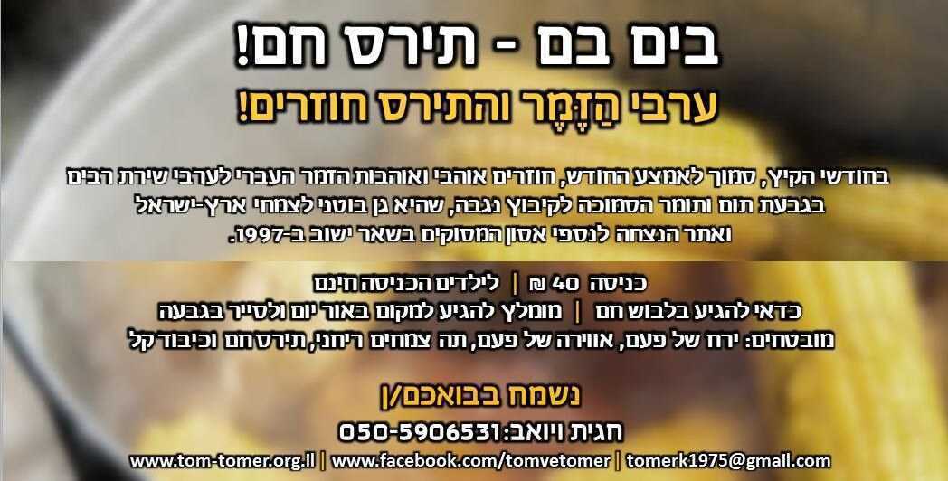 בחודשי הקיץ חוזרים אוהבי ואוהבות הזמר העברי לערבי שירה בגבעת תום ותומר, הסמוכה לקיבוץ נגבה.