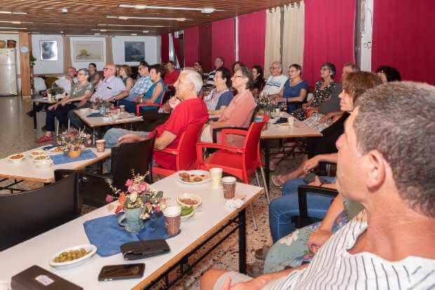 נפגשים אחת לחודש במועדון הקיבוץ.