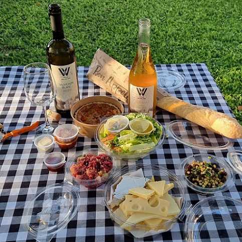 מיטב תוצרת היקב וחווית פיקניק במרפסת הוילה לזוגות עם פינוקי פיקניק ובקבוק יין.